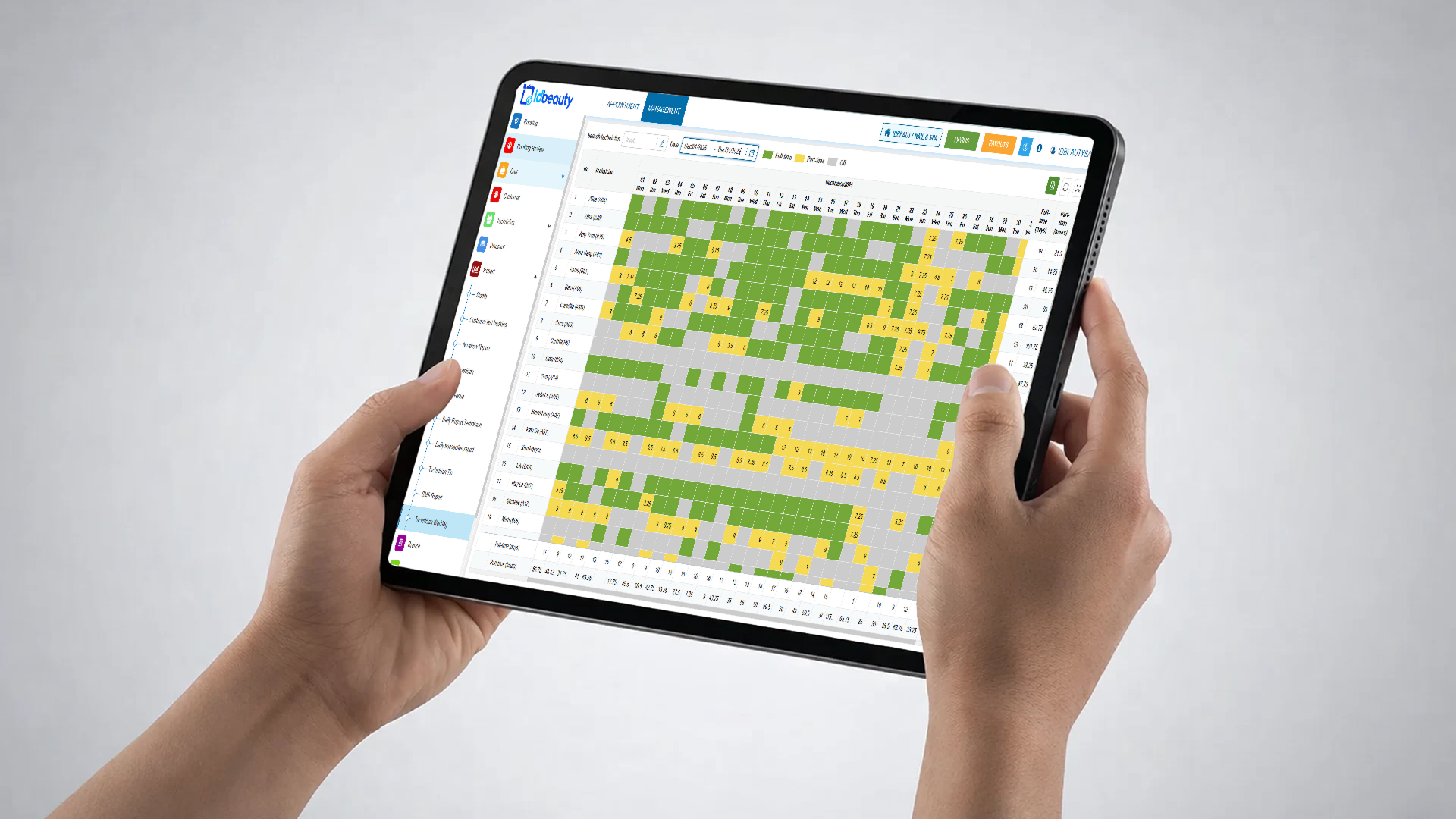 Track staff schedules, income, and performance without spreadsheets or manual calculations.